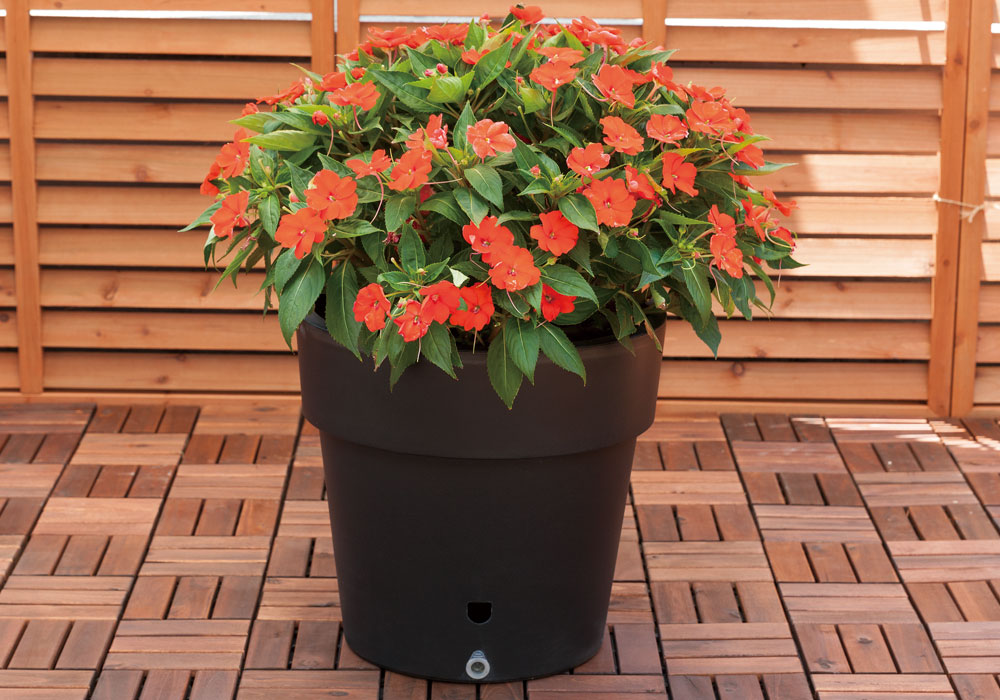 水やりの手間が省けるうえに、シンプル&モダンなフォルムは飽きのこないデザインでガーデニングの演出をお手伝いします。